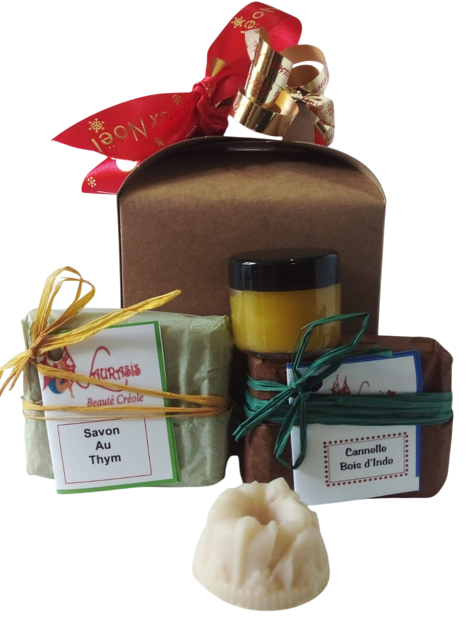 Le Coffret Peau Nette N°2 de Laurasis Beauté Créole est composé d’un : d’un savon au thym, d’un savon au bois d’Inde/Cannelle, d’un ongant Datyé et bois d’Inde + un petit savon de chez Laurasis Beauté Créole.